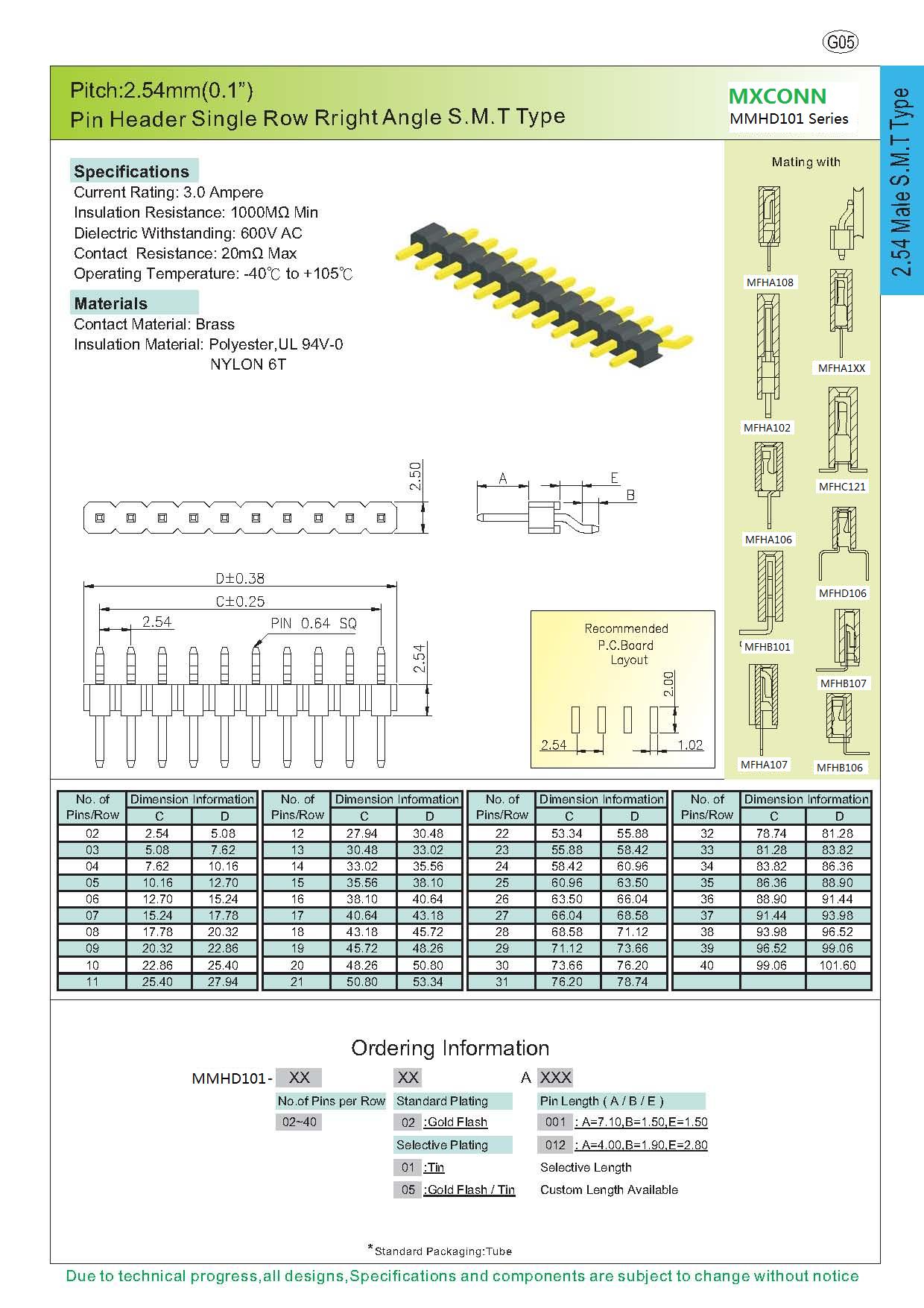 ·Pitch:2.54mm