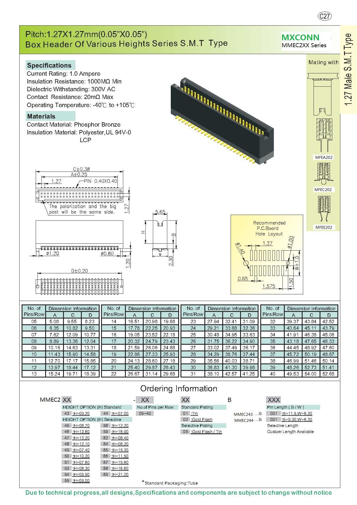 ·Pitch:1.27mm