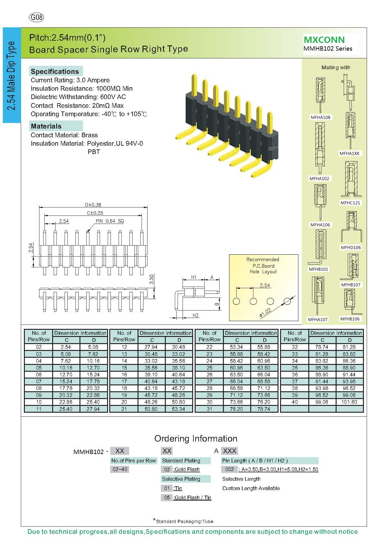 ·Pitch:2.54mm